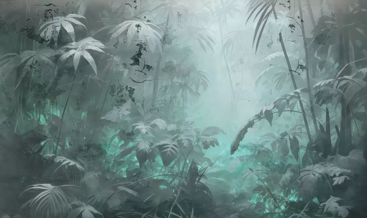 Fototapetes Krāsota džungļi aiz grunge betona sienas Nr. w04833v1