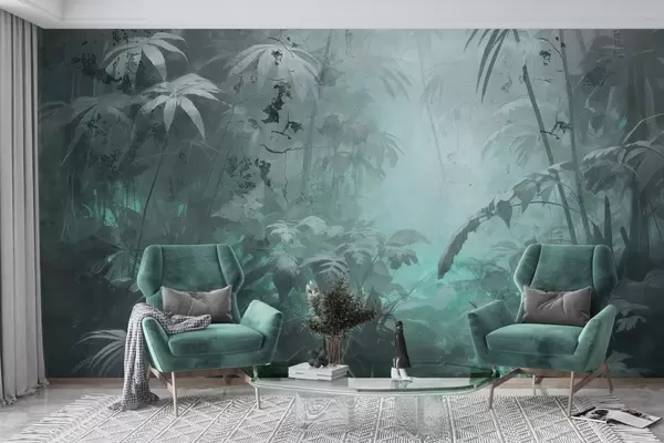 Fototapetes Krāsota džungļi aiz grunge betona sienas Nr. w04833v1