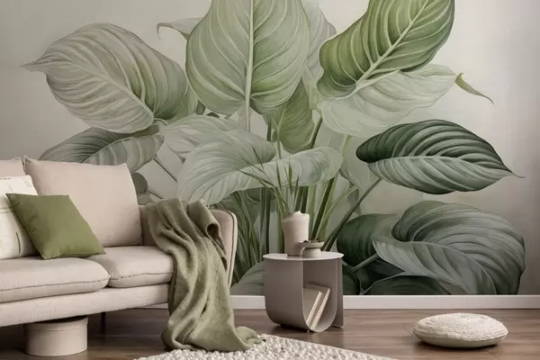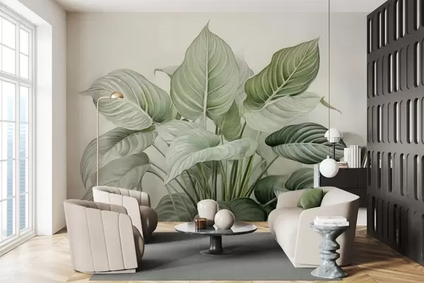 Fototapetes Krāšņs zaļo lapu krūms uz sienas Nr. w04835