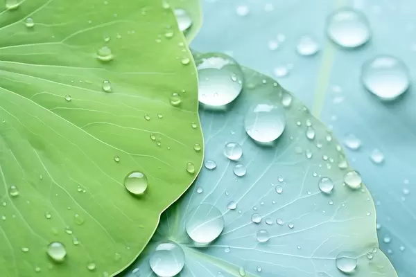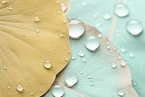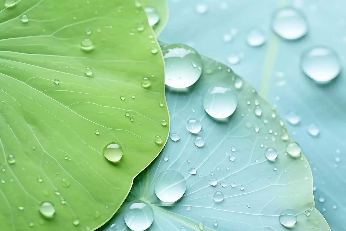 Fototapetes Ūdens pilieni uz lapām makro akvareļgleznojums Nr. w04838
