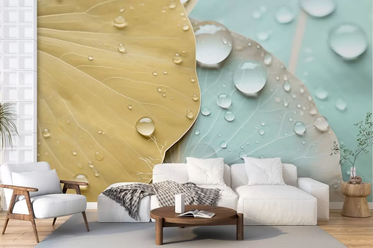 Fototapetes Ūdens pilieni uz lapām makro akvareļgleznojums Nr. w04838v1