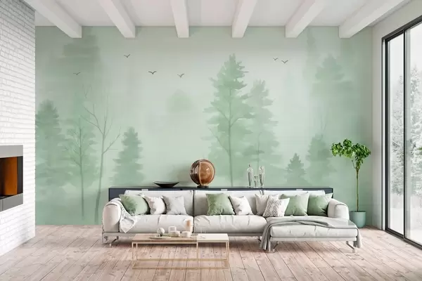 Fototapetes akvareļa stilā attēlots mežs zaļos toņos Nr. w04872v1