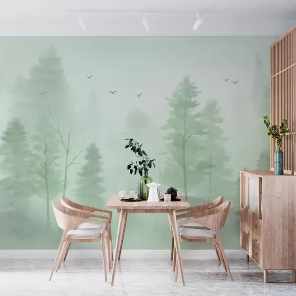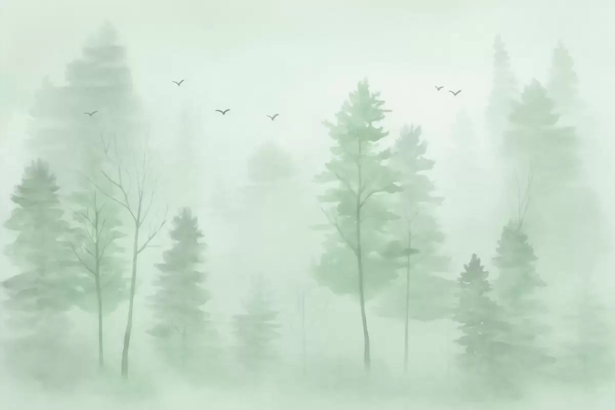 Fototapetes akvareļa stilā attēlots mežs zaļos toņos Nr. w04872v1