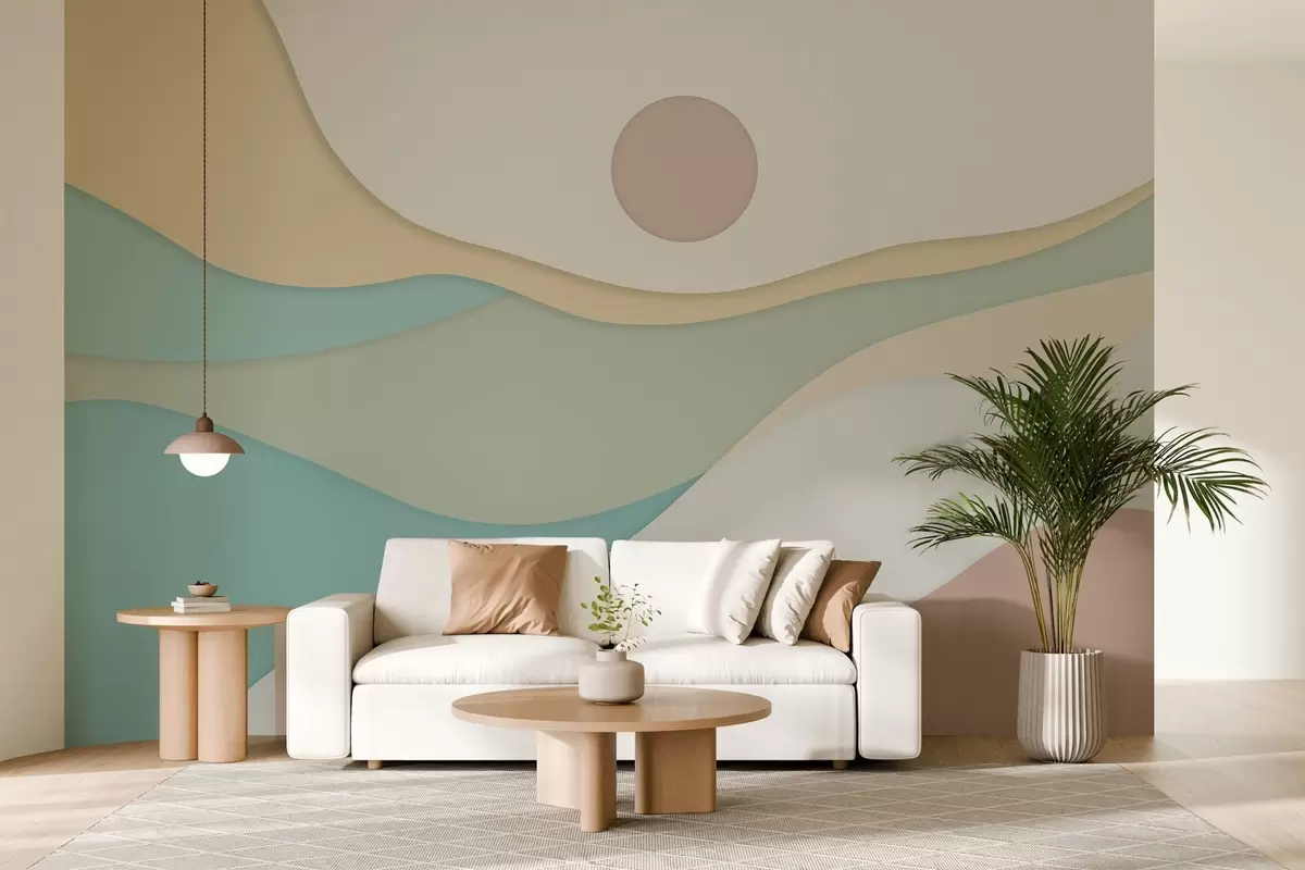 Fototapetes Minimālistiska abstrakcija ar maigām, viļņveidīgām formām, kas atgādina plūstošus ainavas un kāpas. Nr. w04874