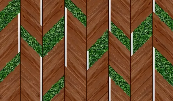 Fototapetes vieglās koka paneļu imitācija ar augu ieliktņiem Nr. w04875