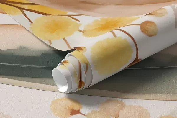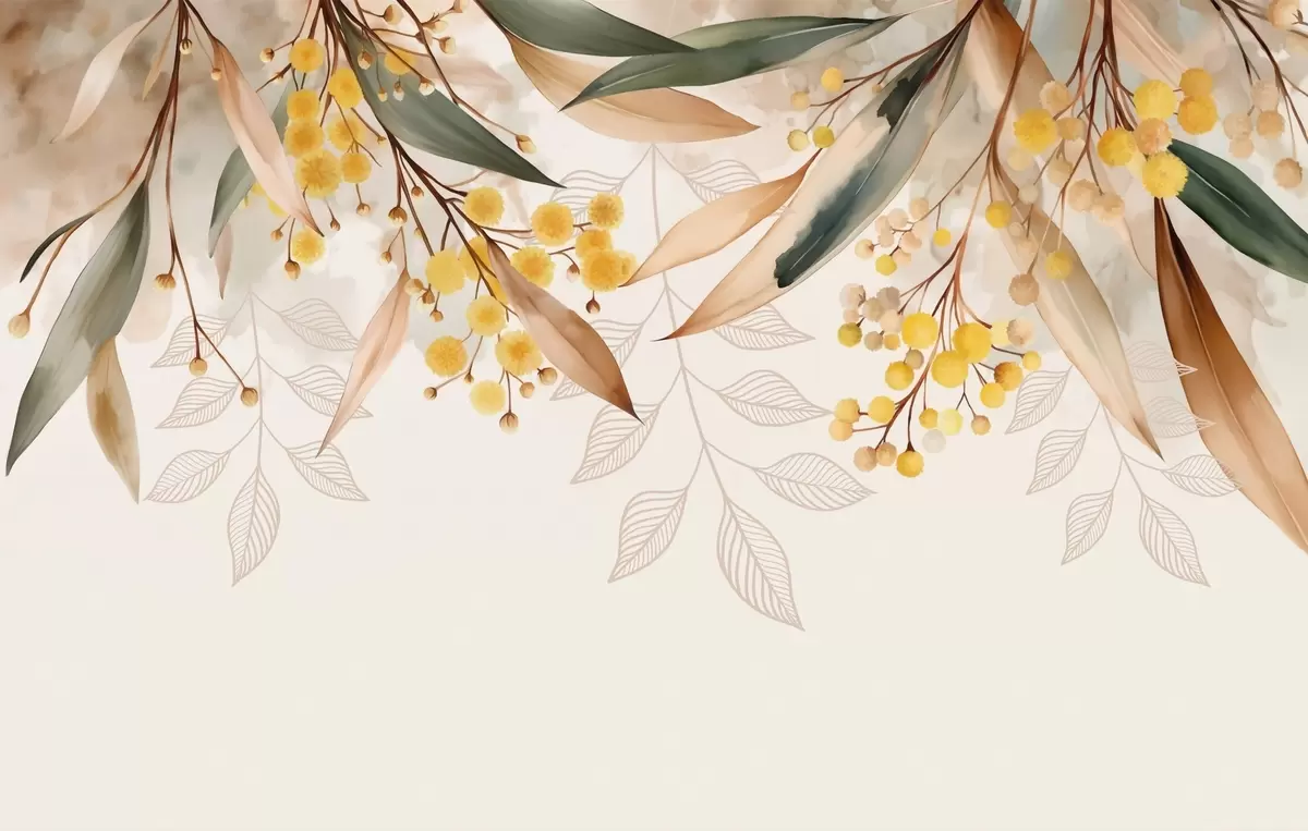 Fototapetes mimozas ziedi un lapas, kas krīt no augšas akvareļa stilā Nr. w04880