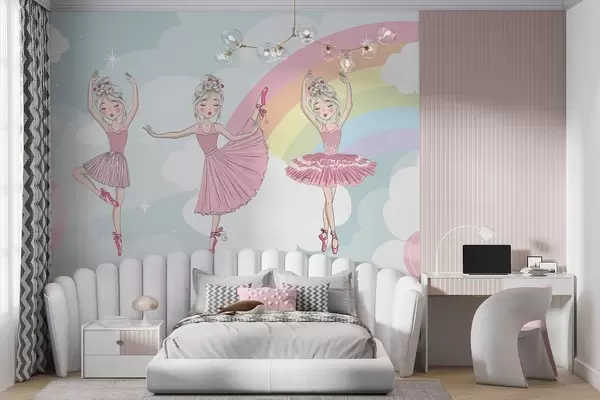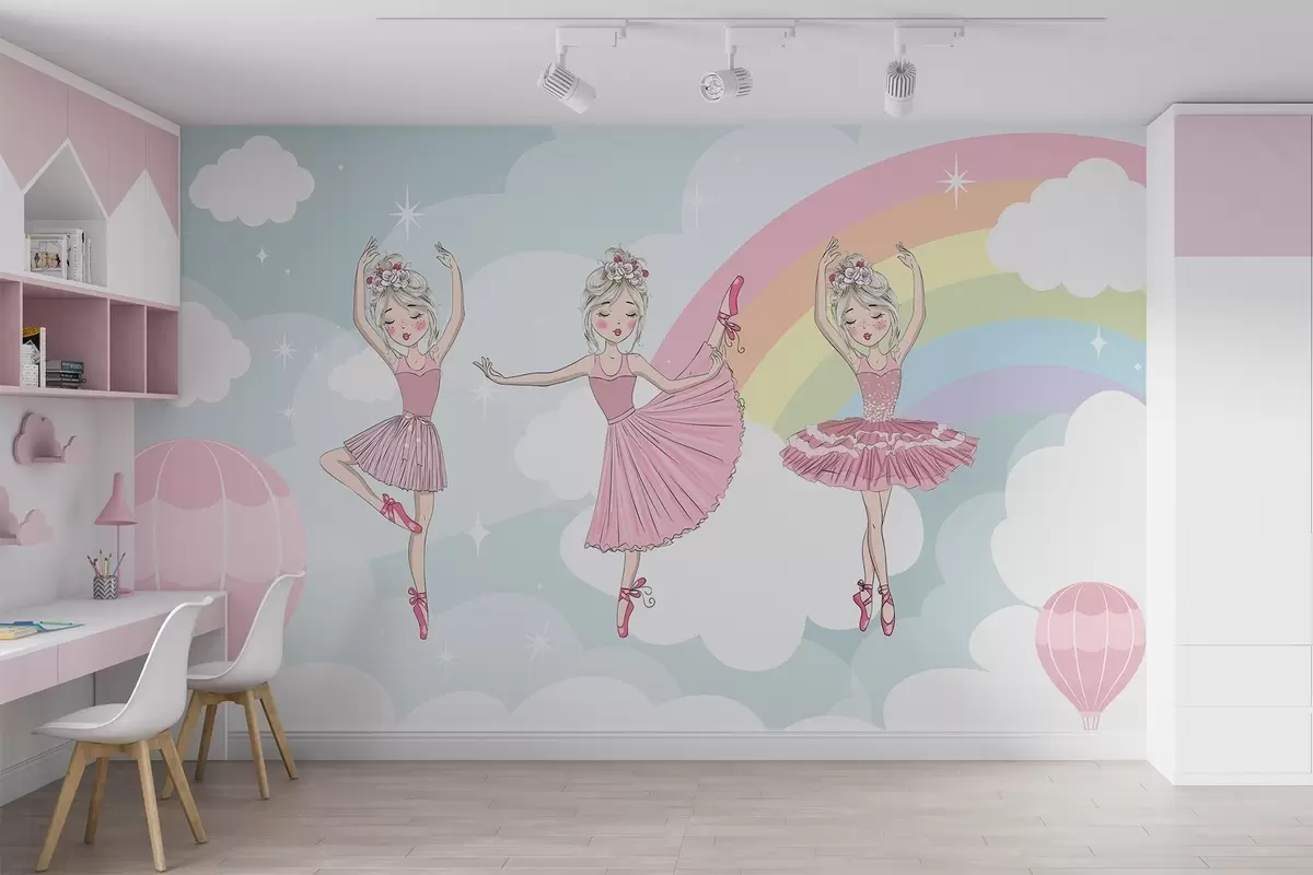 Fototapetes Princeses pret debesu un varavīksnes fonu Nr. w04907