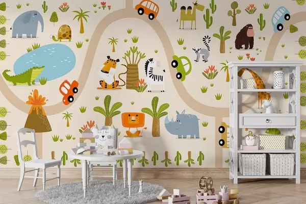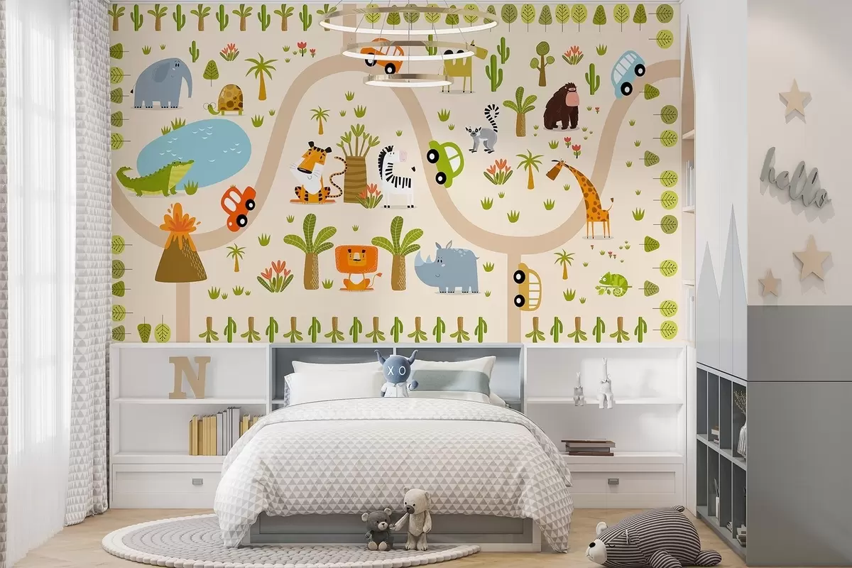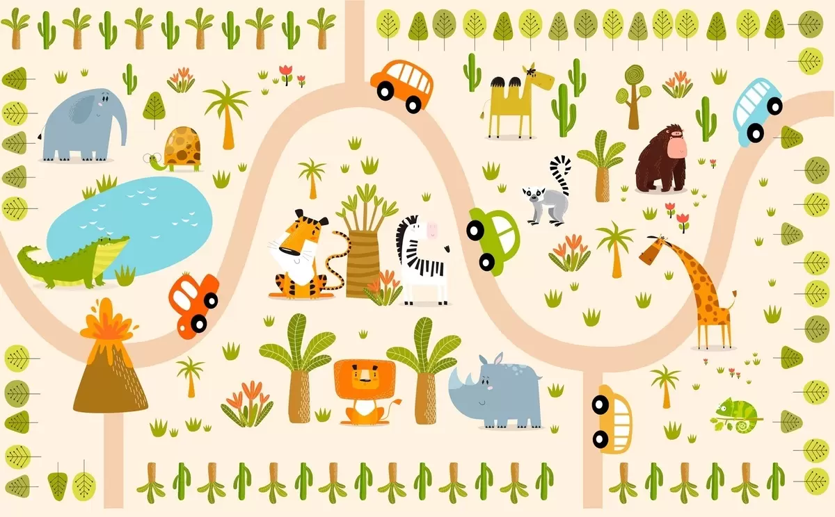 Fototapetes Safari ar dzīvniekiem un automašīnām Nr. w04931