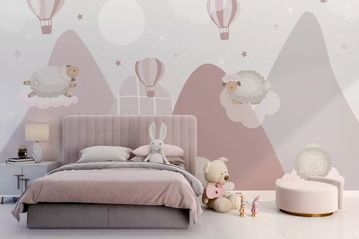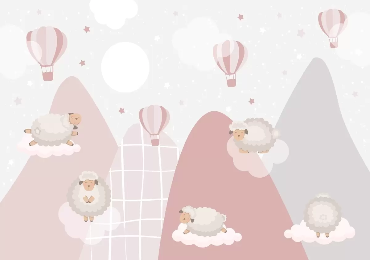 Fototapetes Guļošas aitas uz rozā kalniem Nr. w04932