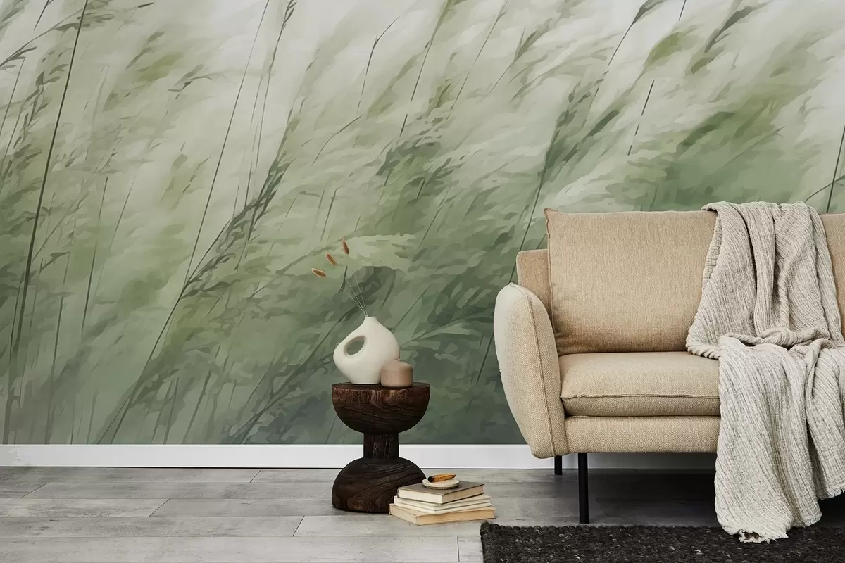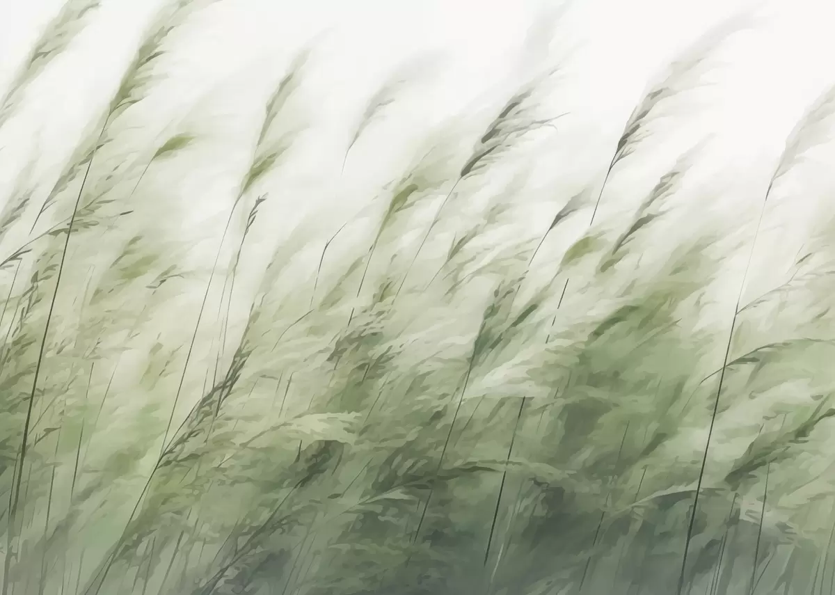 Fototapetes Vieglas zāles vējā, maigi zaļi un balti triepieni Nr. w04957