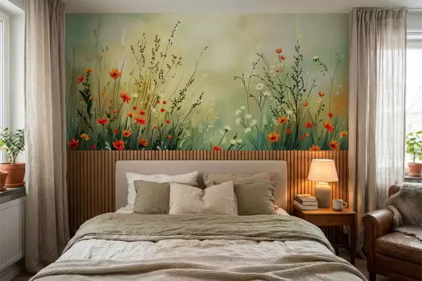 Fototapetes Pļavas ziedi un zāles maigā gleznieciskā stilā Nr. w05015