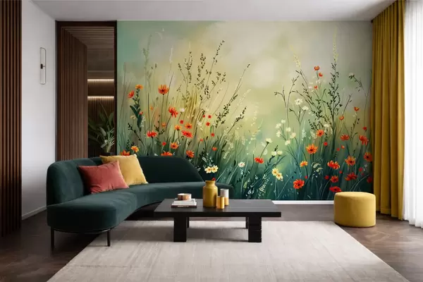 Fototapetes Pļavas ziedi un zāles maigā gleznieciskā stilā Nr. w05015