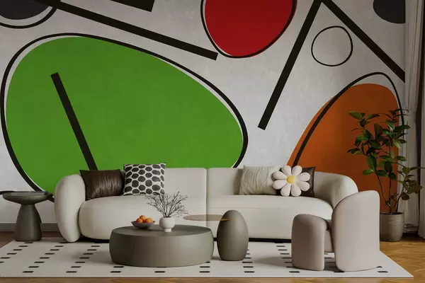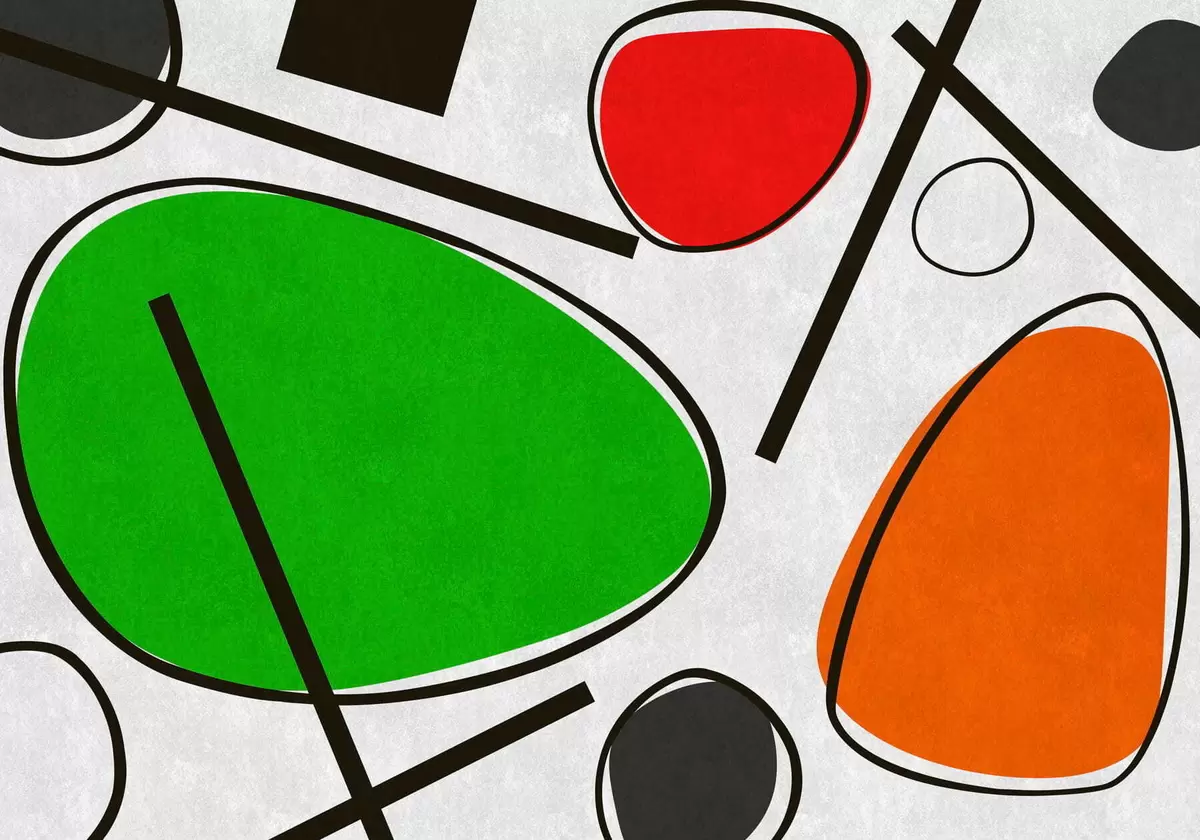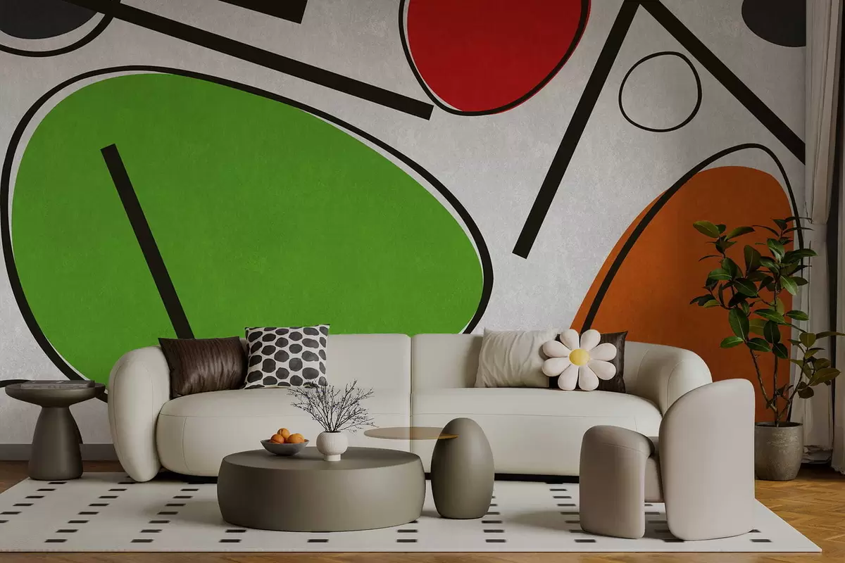 Fototapetes Abstraktas ģeometriskas formas ar līnijām un izteiksmīgām krāsu zonām Nr. w05017v1