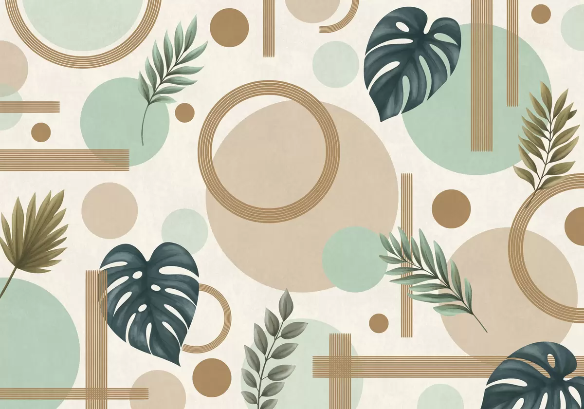Fototapetes Ģeometrisks raksts ar lapām zaļā krāsu gamā Nr. w05018v1