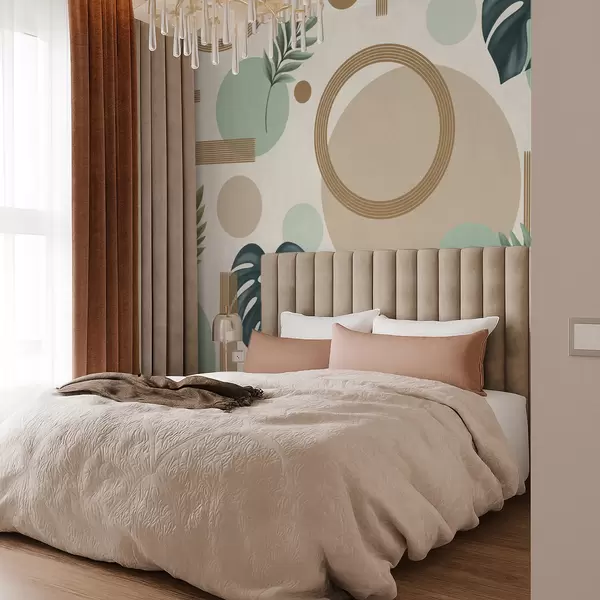 Fototapetes Ģeometrisks raksts ar lapām zaļā krāsu gamā Nr. w05018v1