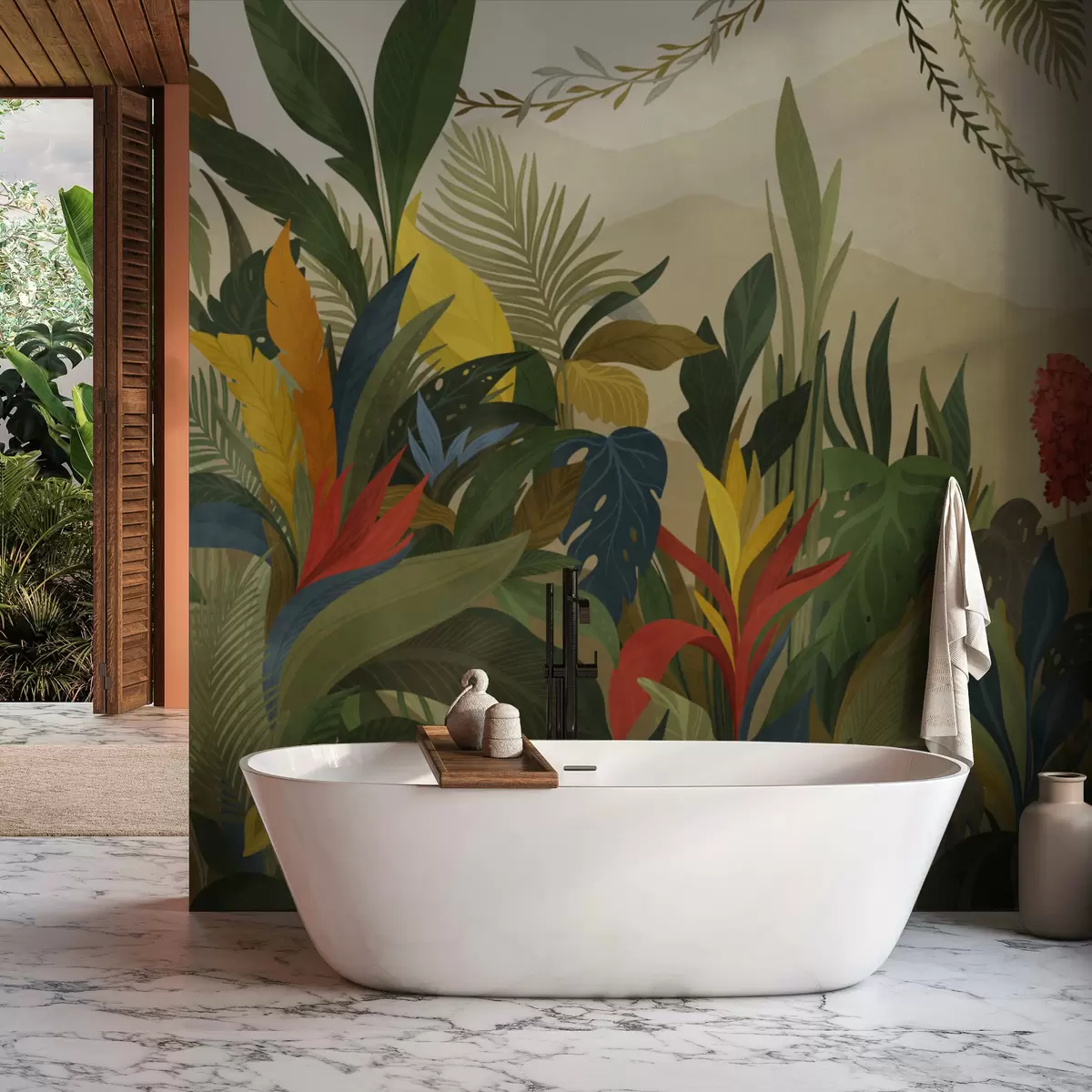 Fototapetes Tropu augi ar lielām lapām un ziediem Nr. w05019