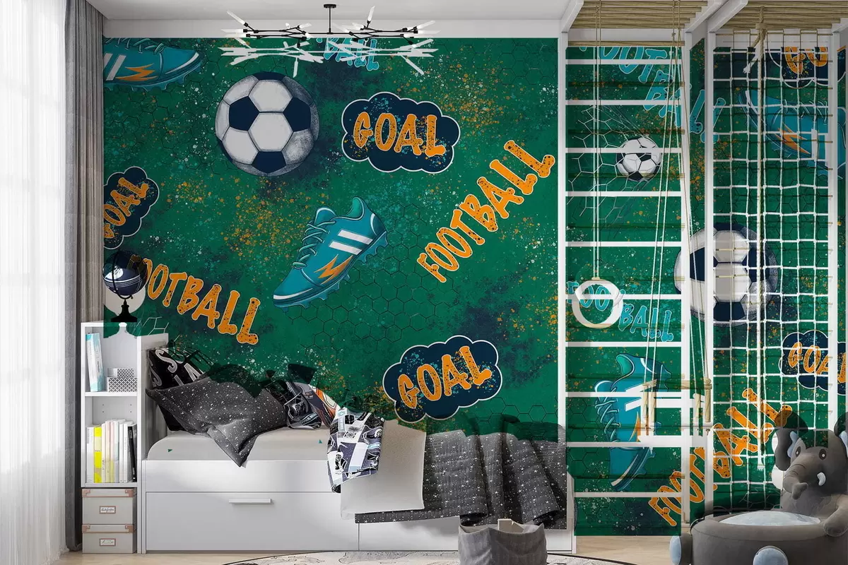 Fototapetes Bērnu futbola raksts zaļos toņos Nr. w05037v1