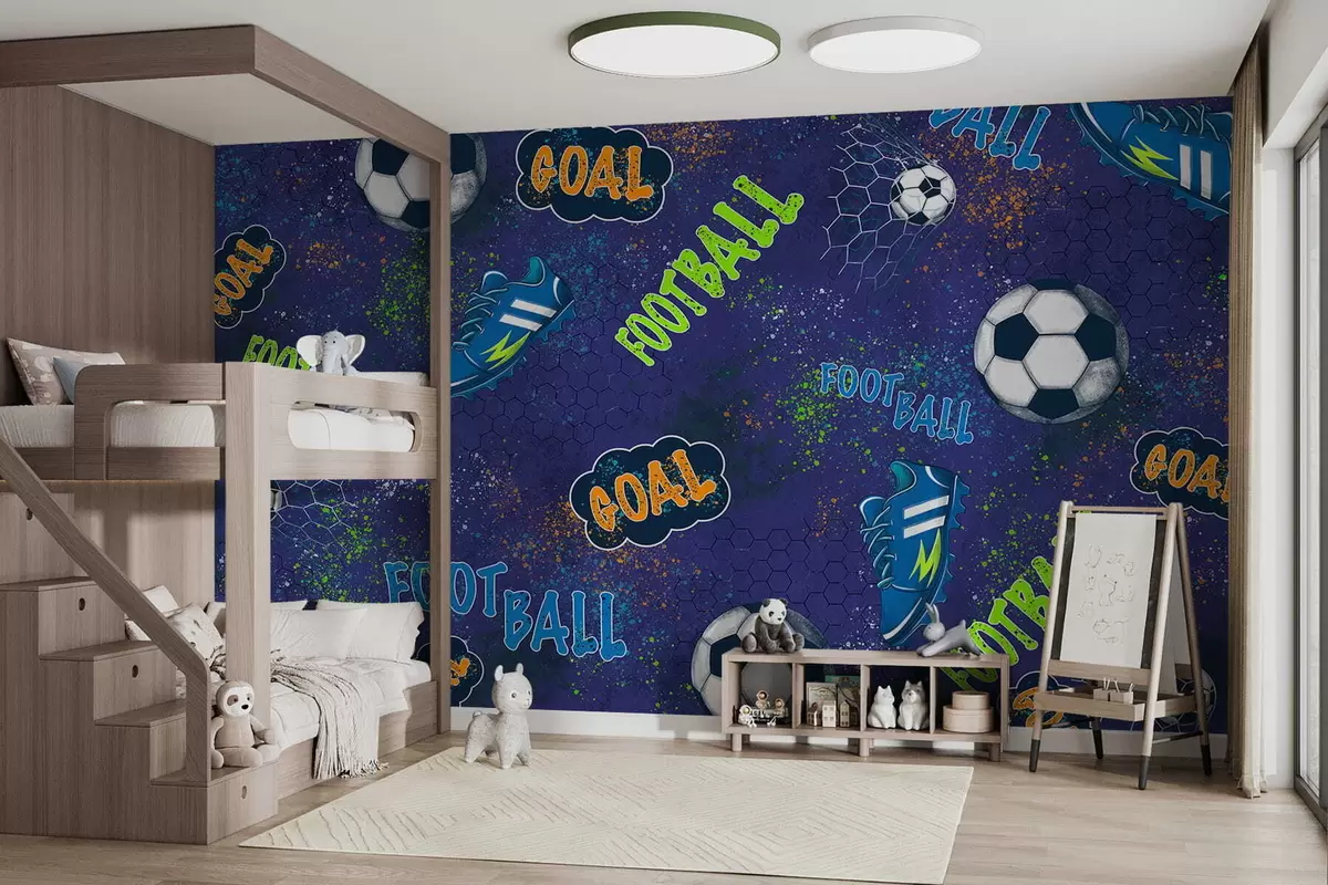 Fototapetes Bērnu futbola raksts tumši zilos toņos Nr. w05037v3