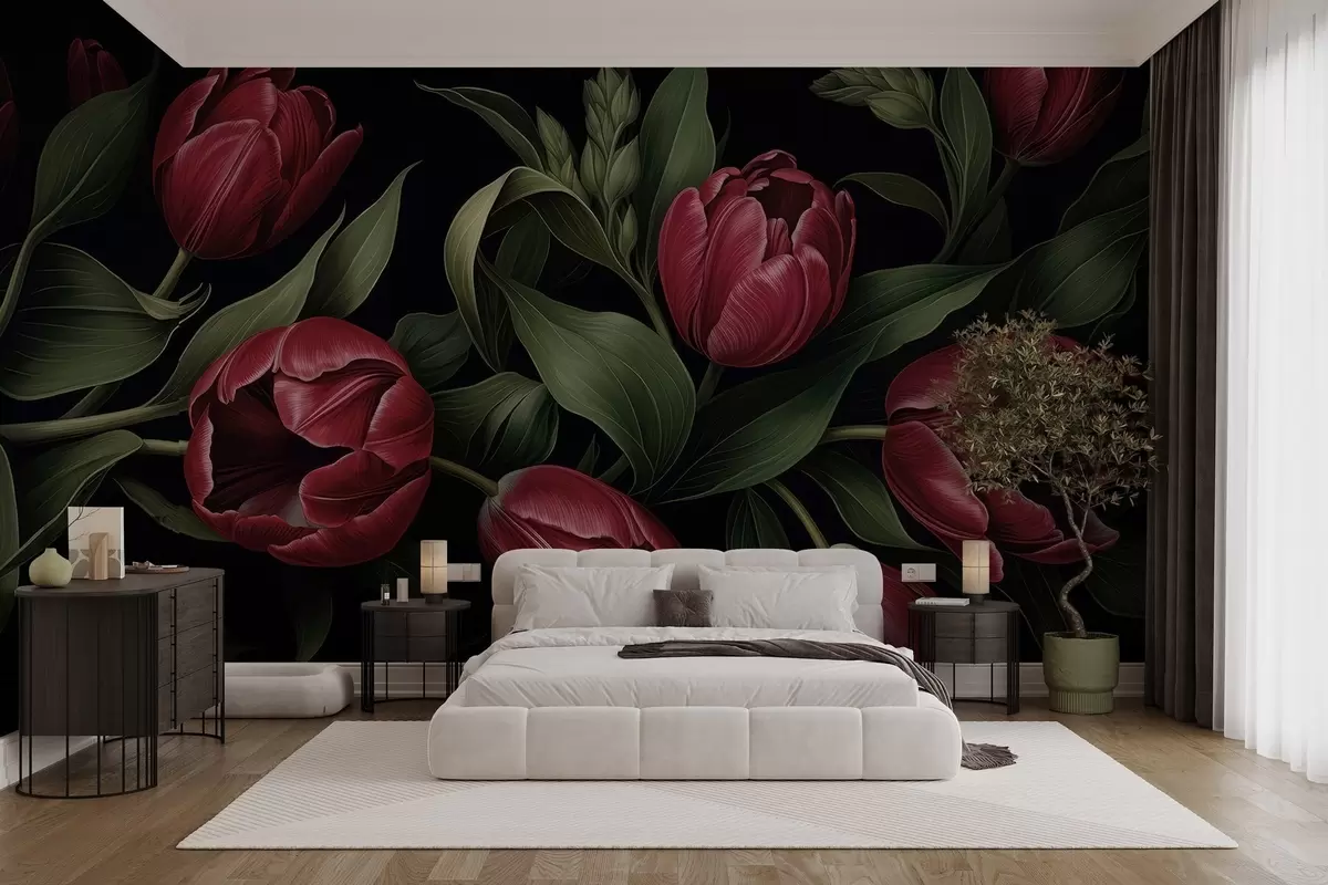 Fototapetes Sarkanās nakts tulpes Nr. w05047
