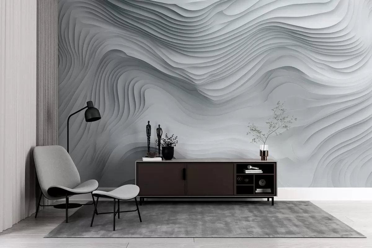 Fototapetes apjomīgu pakāpveida reljefu imitācija pelēkās toņos Nr. w05061