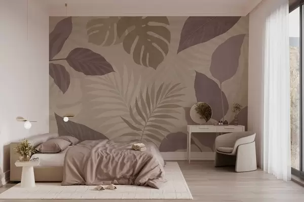 Fototapetes teksturētas tropu lapas uz smilšaina fona Nr. w05063