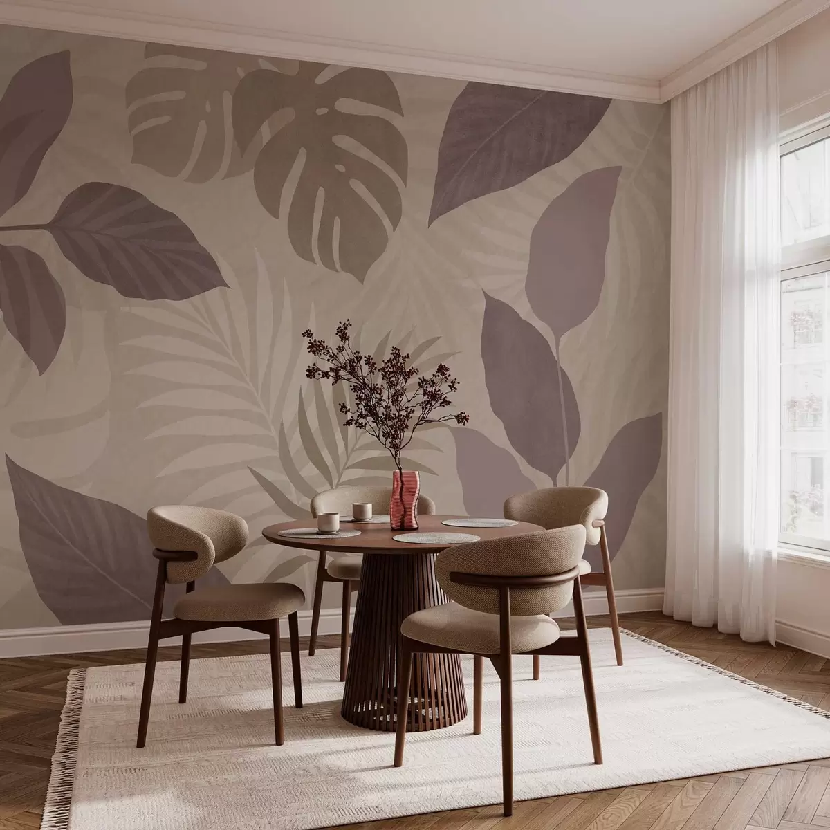Fototapetes teksturētas tropu lapas uz smilšaina fona Nr. w05063