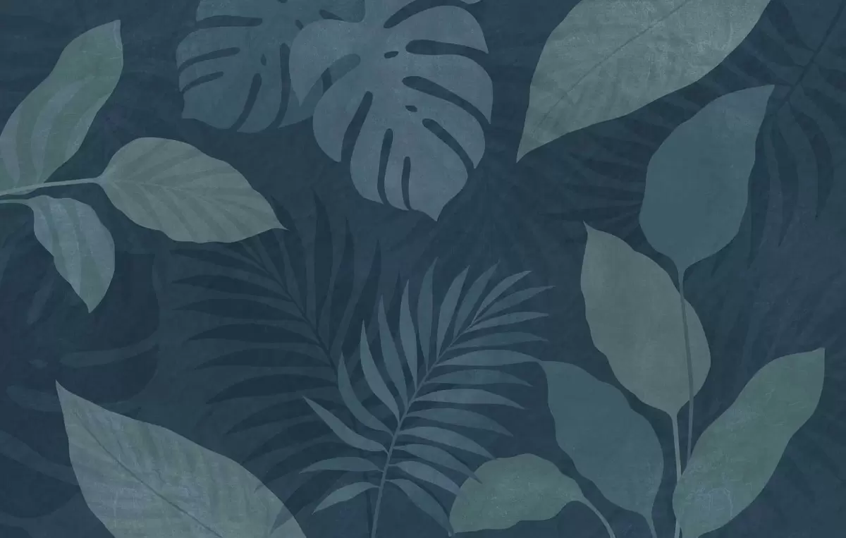 Fototapetes teksturētas tropu lapas uz tumši zila fona Nr. w05063v3