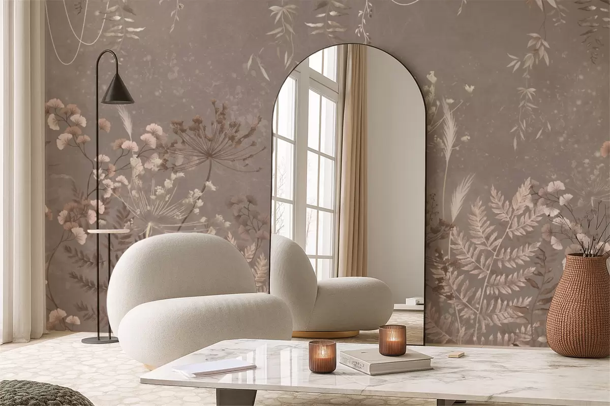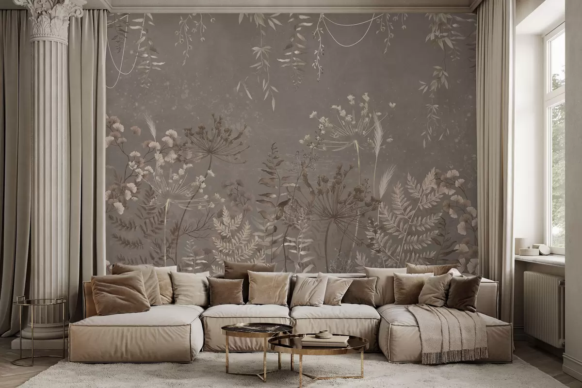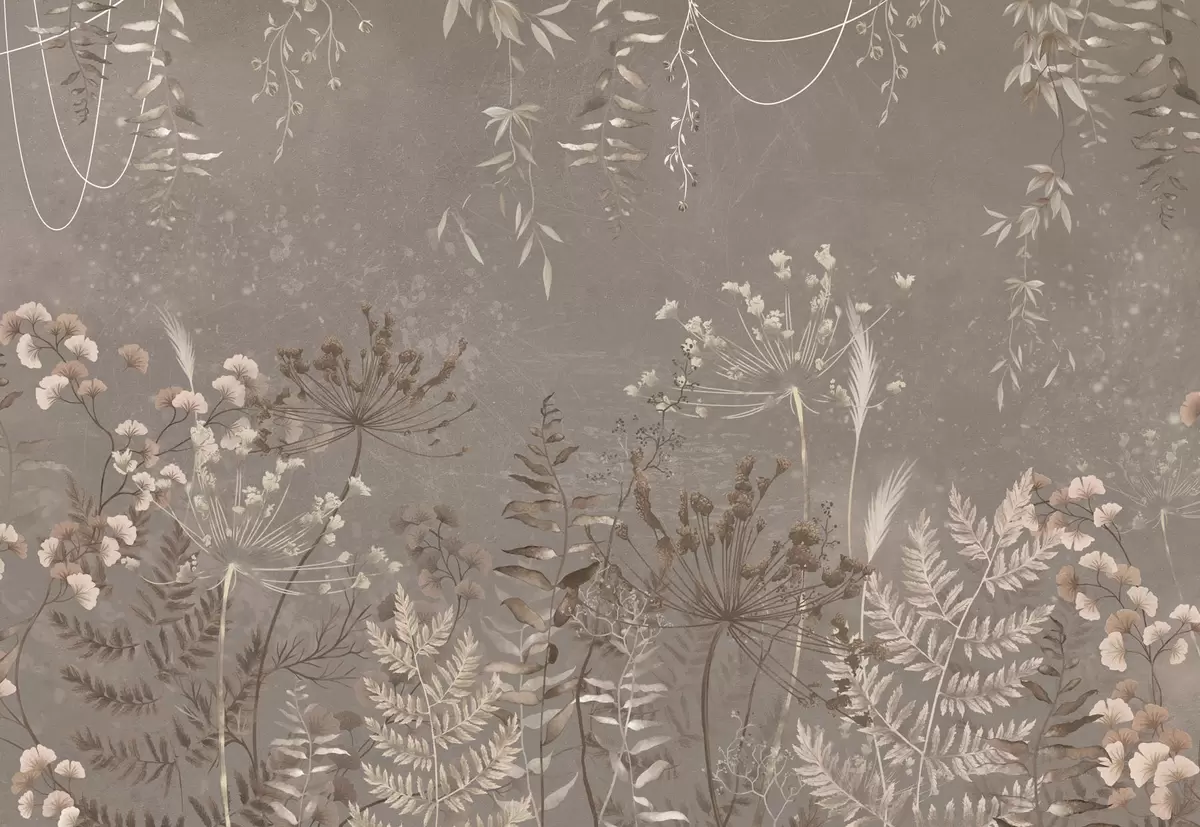 Fototapetes Viegli botānisks raksts ar ziediem un lapām Nr. w05092v1