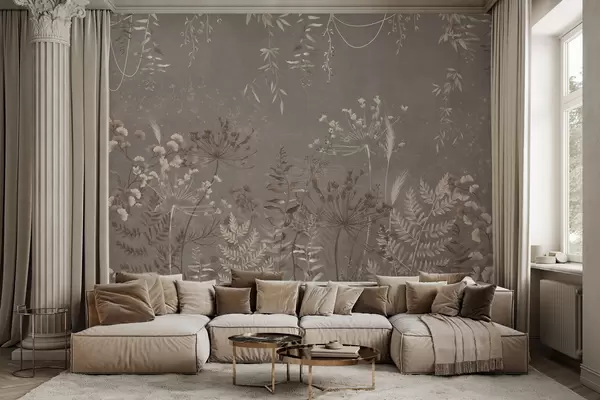 Fototapetes Viegli botānisks raksts ar ziediem un lapām Nr. w05092v1