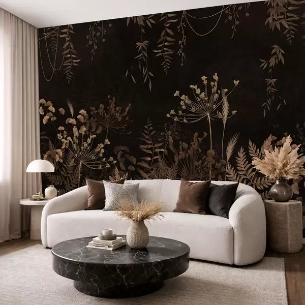 Fototapetes Tumšs botānisks raksts ar ziediem un zāli Nr. w05092v3