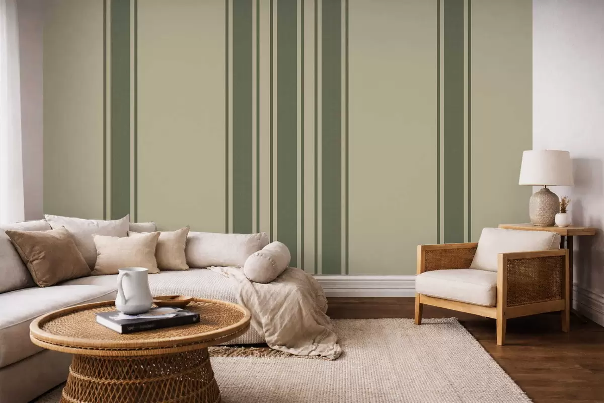 Fototapetes Vertikālas svītras klusināti zaļā un smilškrāsā toņu gamā Nr. w05098