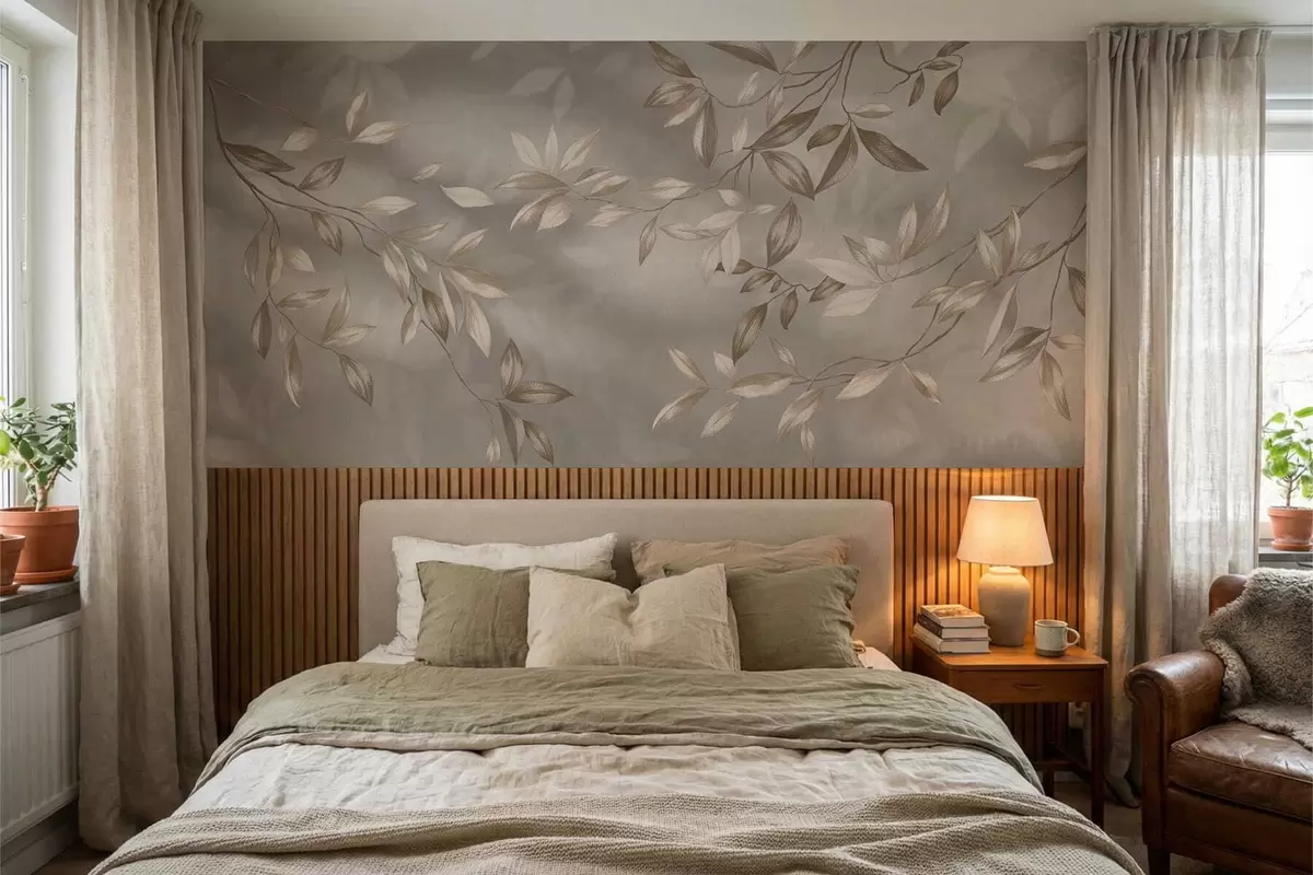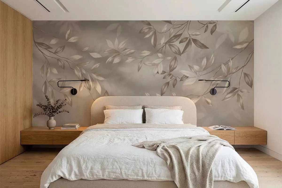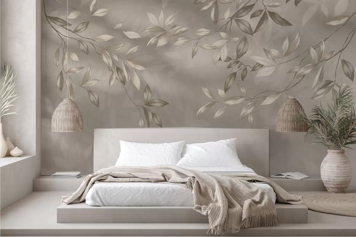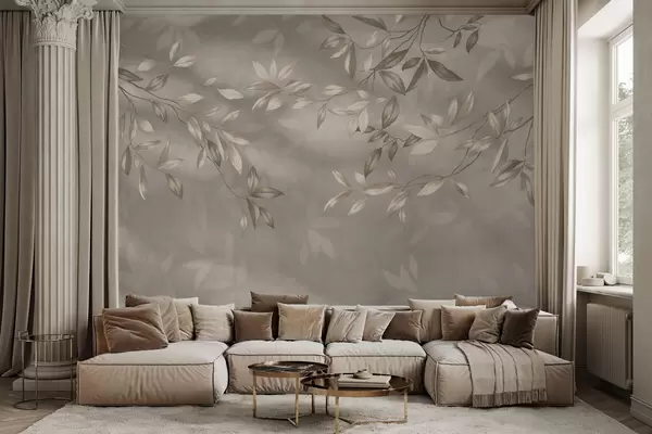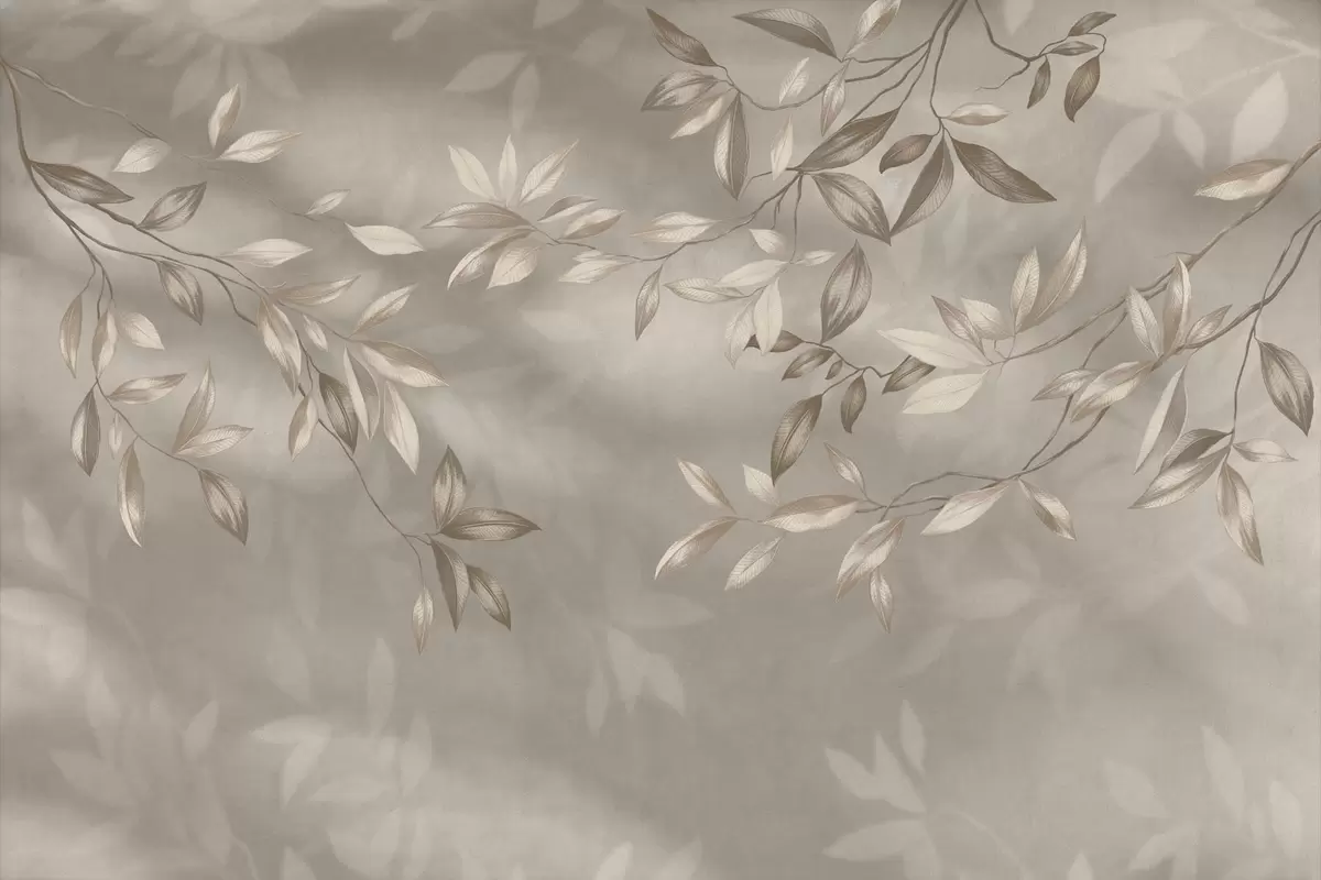 Fototapetes Eleganti lapu zari smilškrāsas toņos uz gaiša fona Nr. w05113