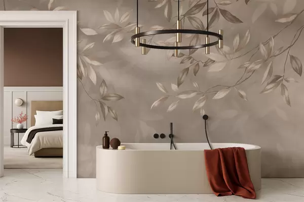 Fototapetes Eleganti lapu zari smilškrāsas toņos uz gaiša fona Nr. w05113