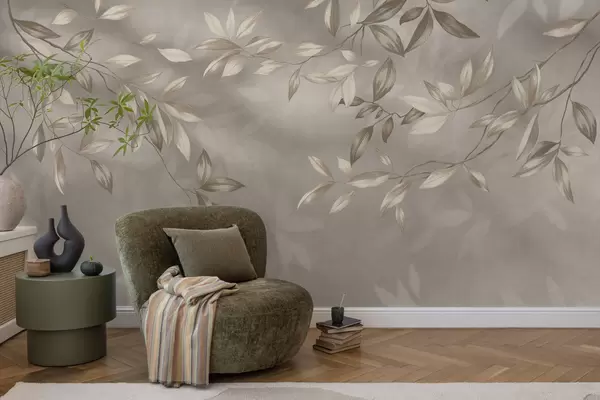 Fototapetes Eleganti lapu zari smilškrāsas toņos uz gaiša fona Nr. w05113