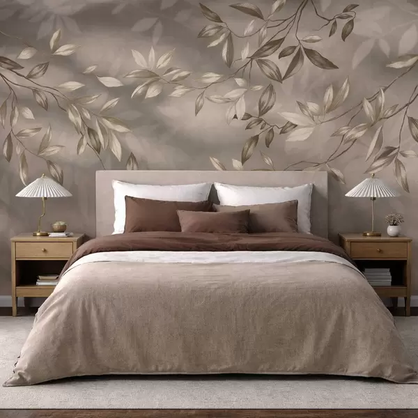 Fototapetes Delikātas lapu zaras smilškrāsas toņos uz gaiša fona Nr. w05113v2
