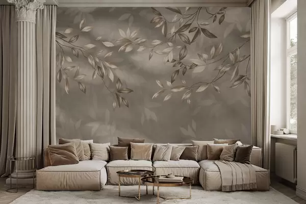 Fototapetes Delikātas lapu zaras smilškrāsas toņos uz gaiša fona Nr. w05113v2