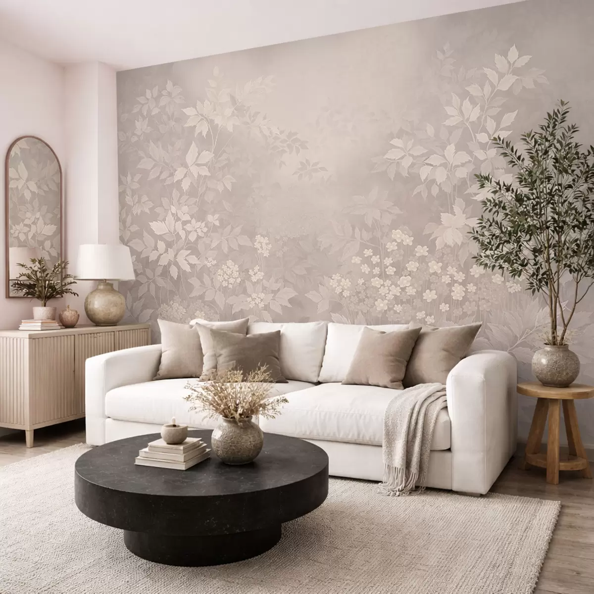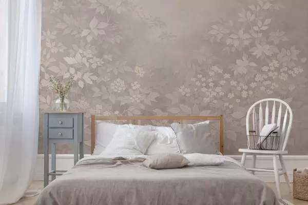 Fototapetes Viegli botāniski ornamenti ar lapām un maziem ziediem Nr. w05115