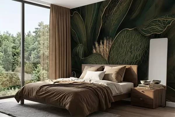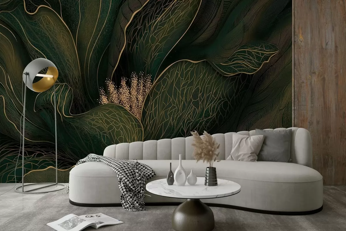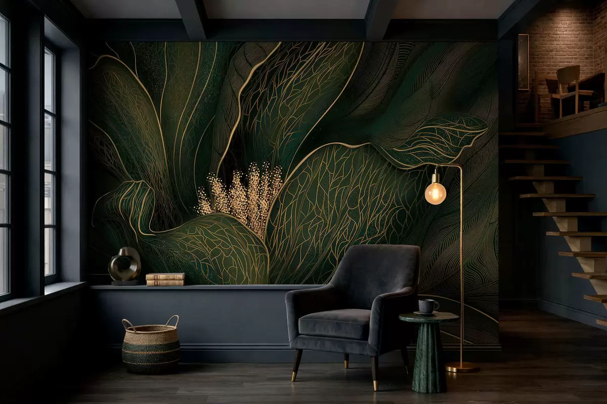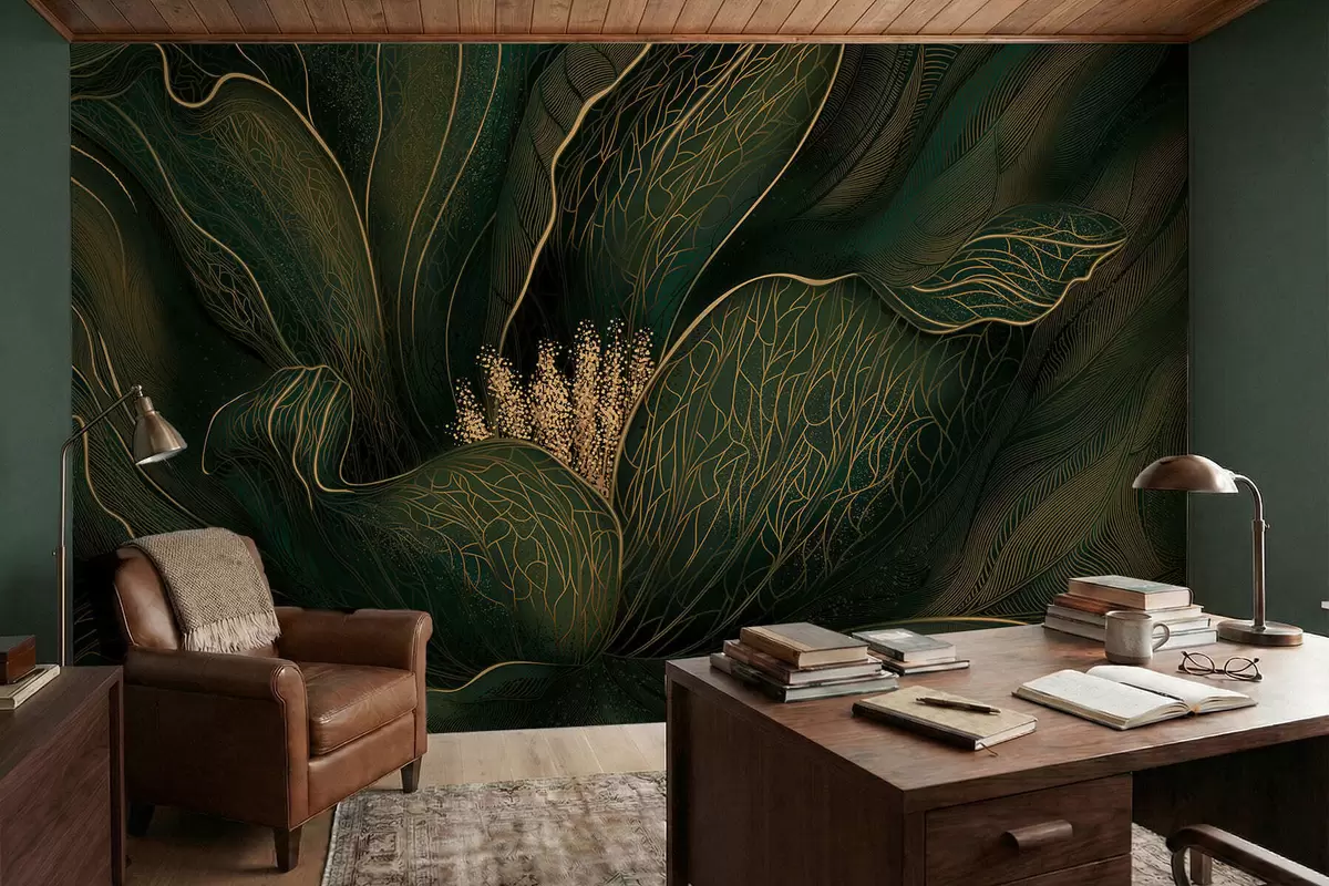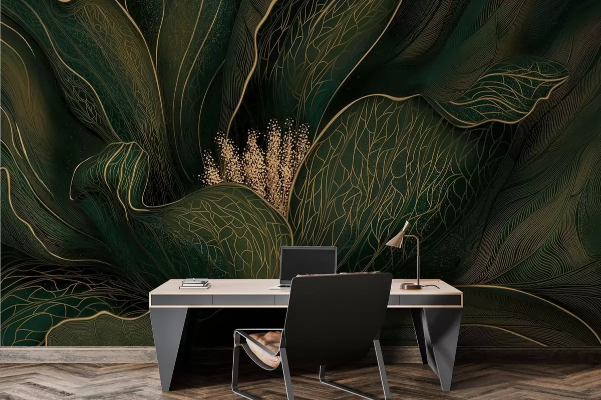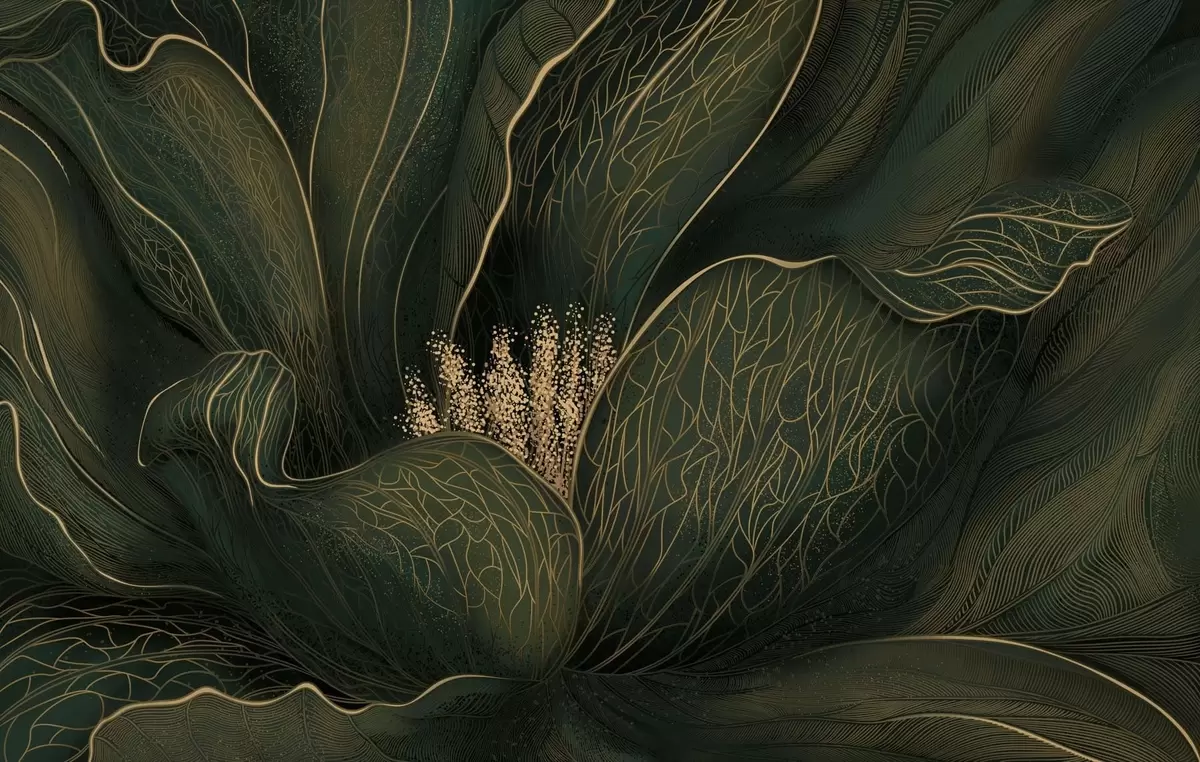 Fototapetes Tumši zaļa abstraktā zieda attēls ar smalkām līnijām Nr. w05119v1