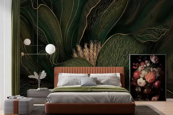 Fototapetes Tumši zaļa abstraktā zieda attēls ar smalkām līnijām Nr. w05119v1