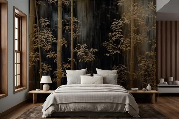 Fototapetes Tumšs bambuss uz melna fona Nr. w05120