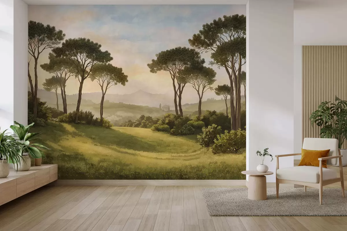Fototapetes Ainava ar kokiem siltā saulrieta gaismā Nr. w05122