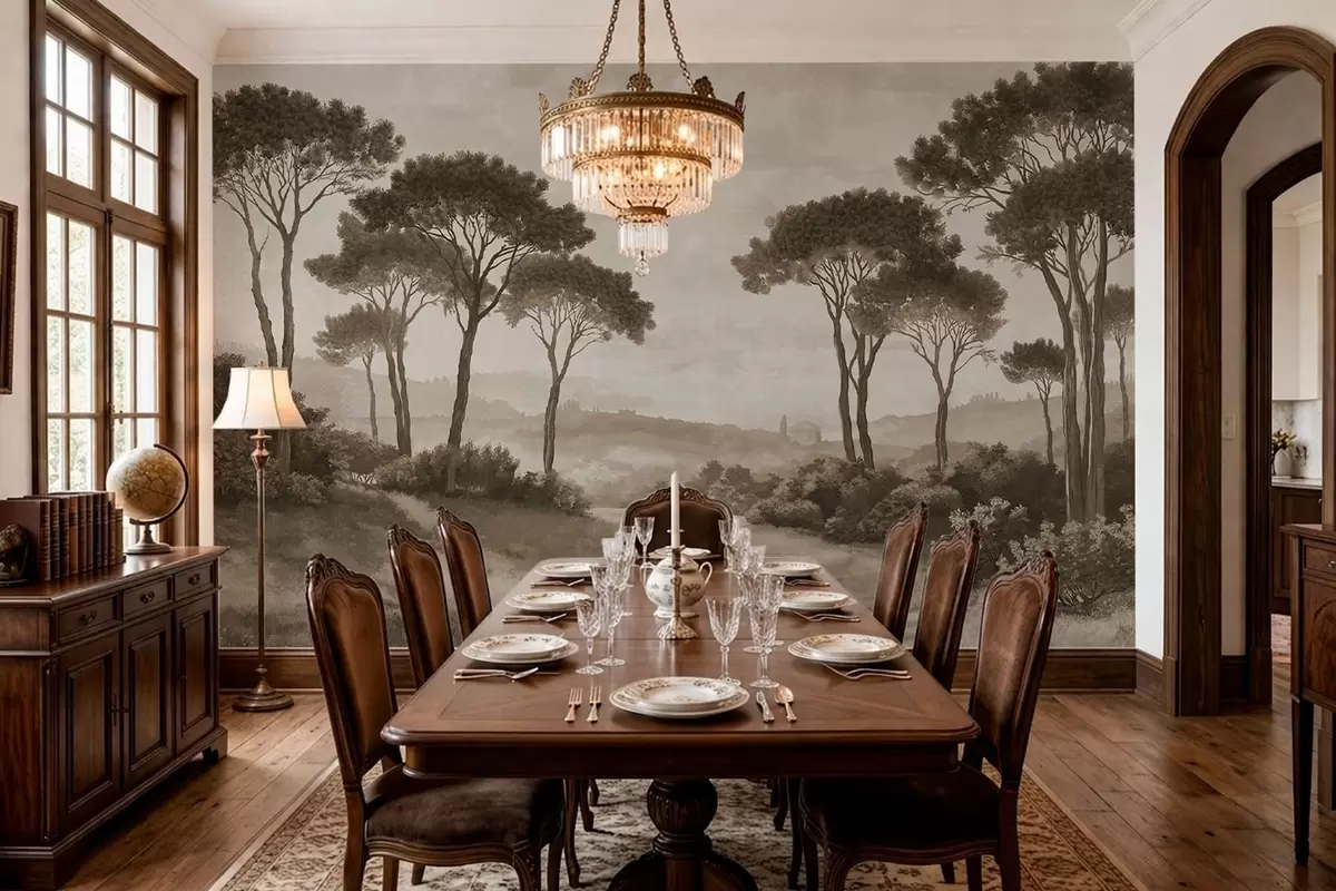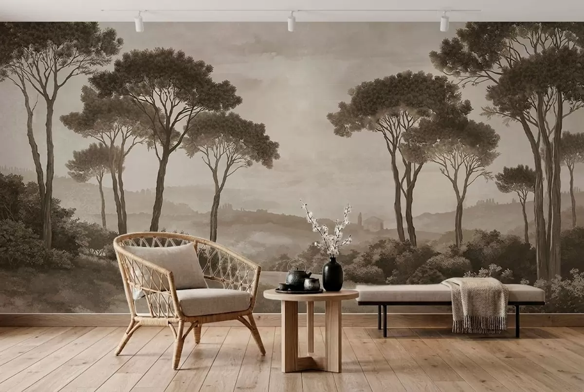 Fototapetes Ainava ar kokiem vintage sēpijas toņos Nr. w05122v2