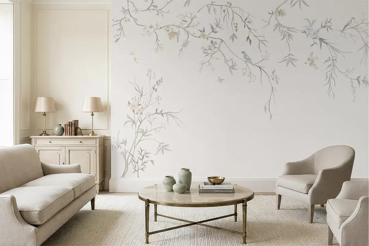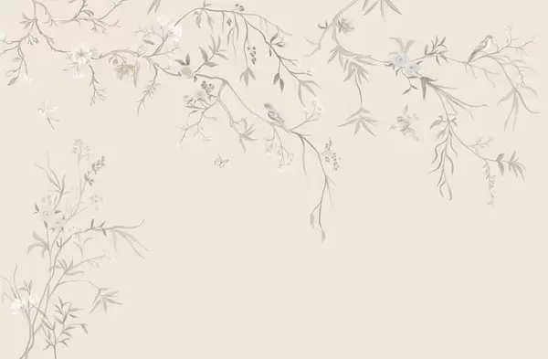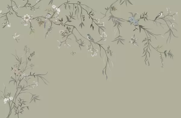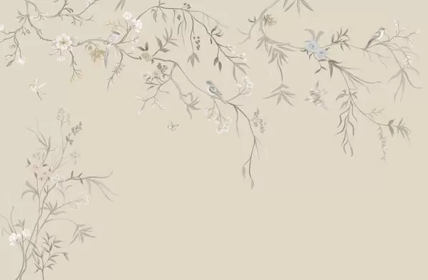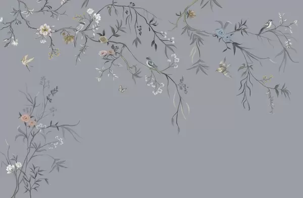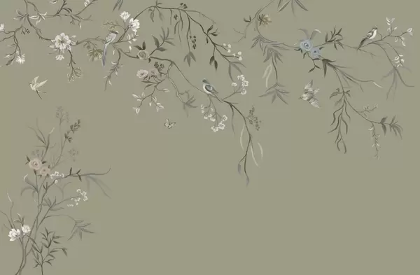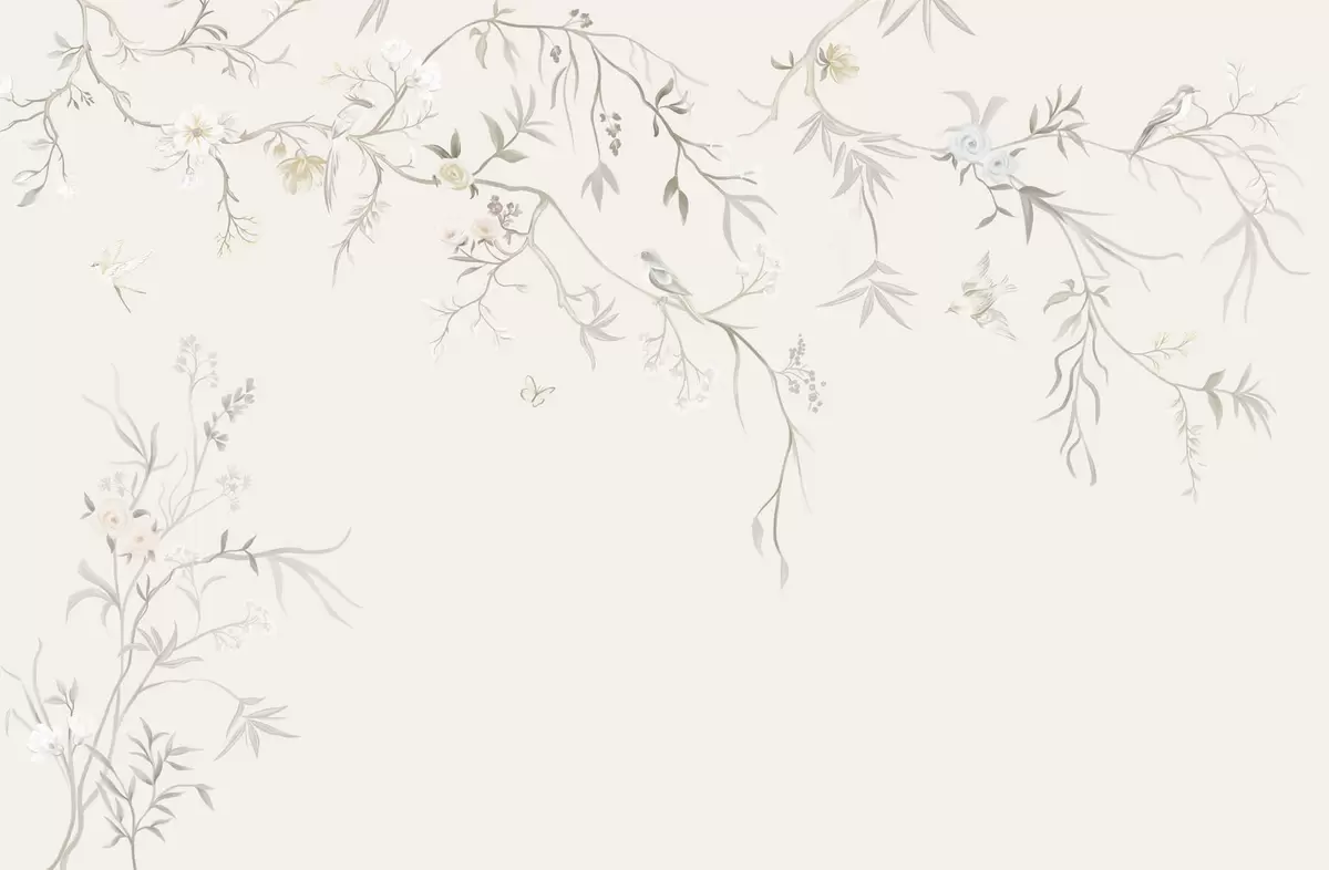 Fototapetes Delikāti ziedi un putni uz krīta fona Nr. w05127