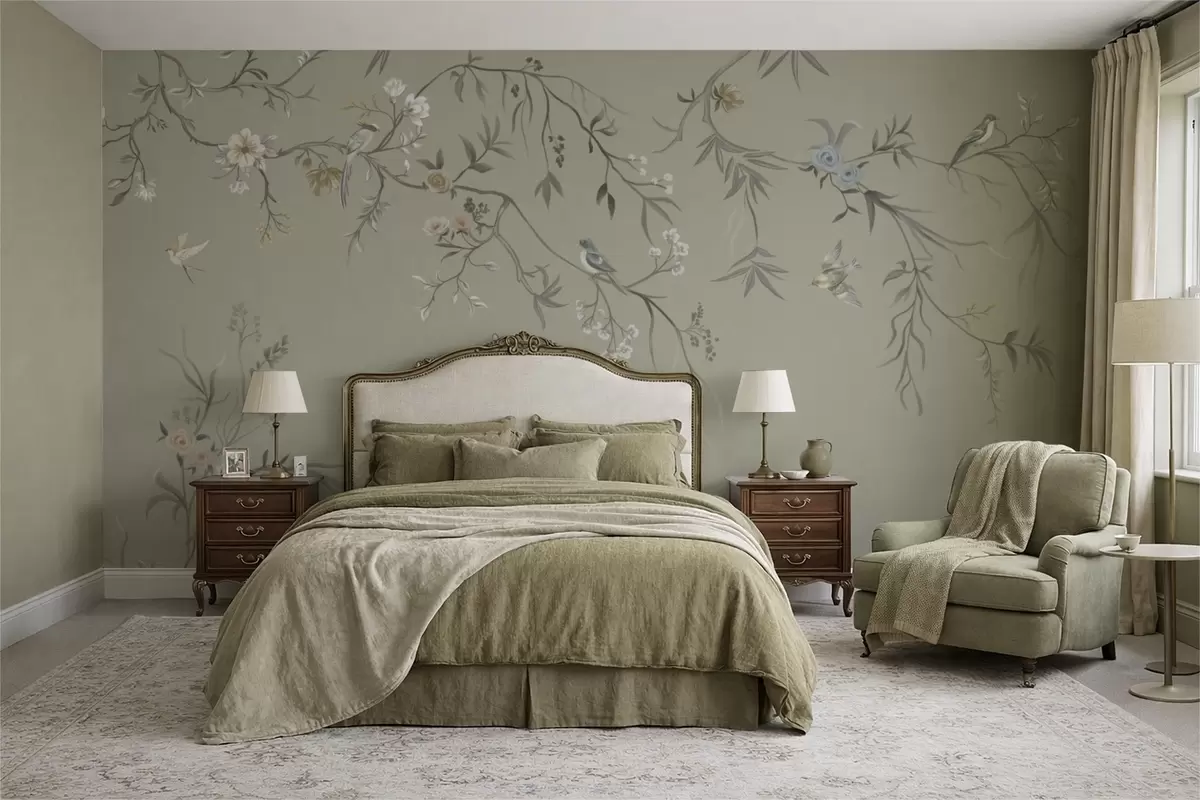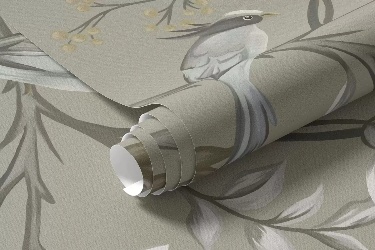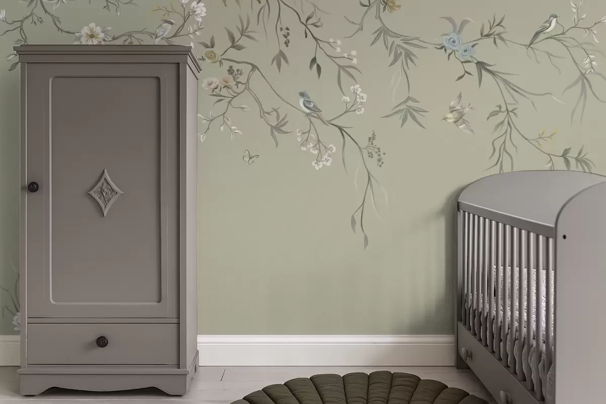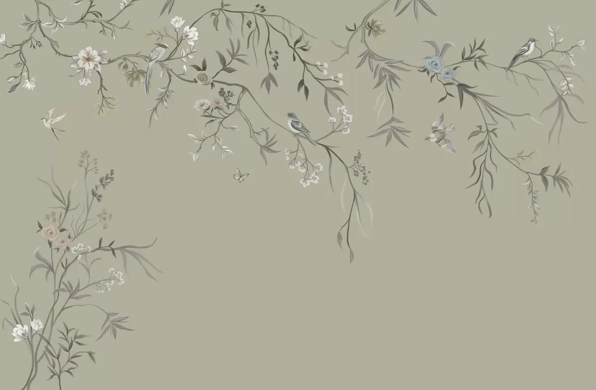 Fototapetes Ziedu raksts ar putniem uz vēsā fona Nr. w05127v6