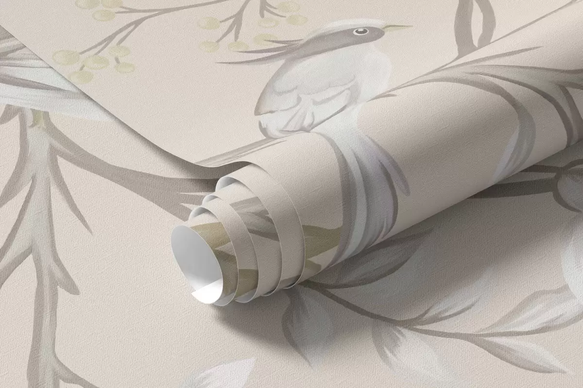 Fototapetes Ziedu zari ar putniem uz gaiša fona Nr. w05127v7