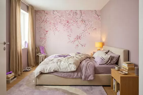 Fototapetes Zari ar rozā ziediem uz maiga pasteļtoņa fona Nr. w05129v1