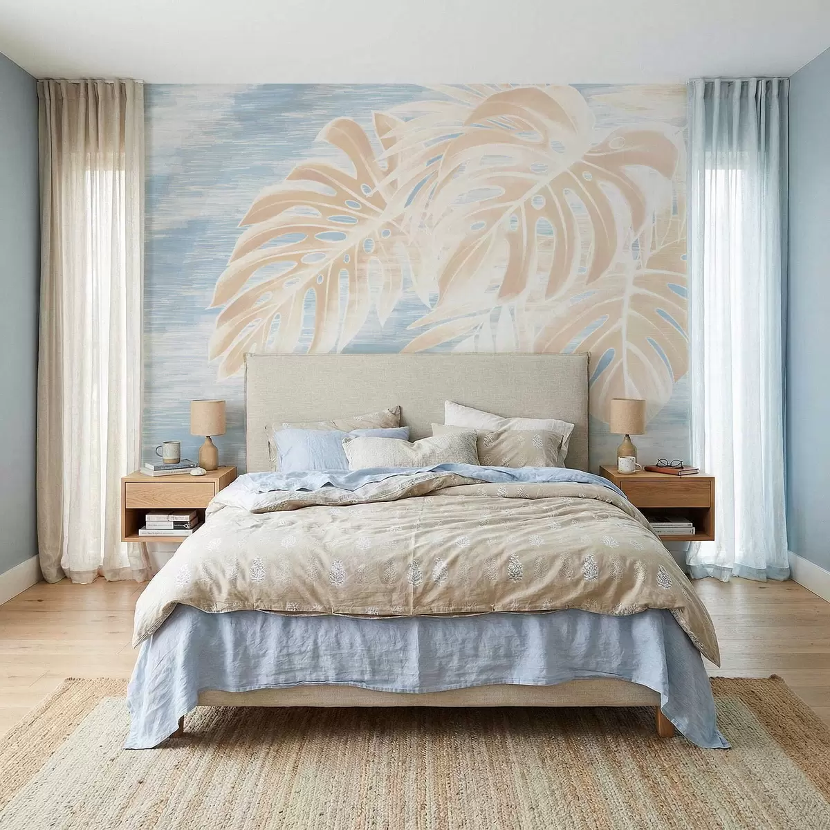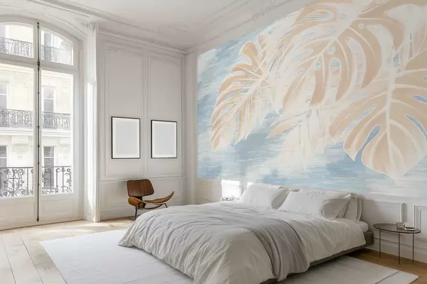 Fototapetes Abstraktas lapas siltos smilškrāsas toņos uz gaiša fona Nr. w05130