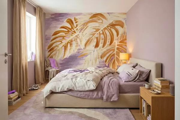 Fototapetes Lapas siltos oranžos toņos uz violeta fona Nr. w05130v2