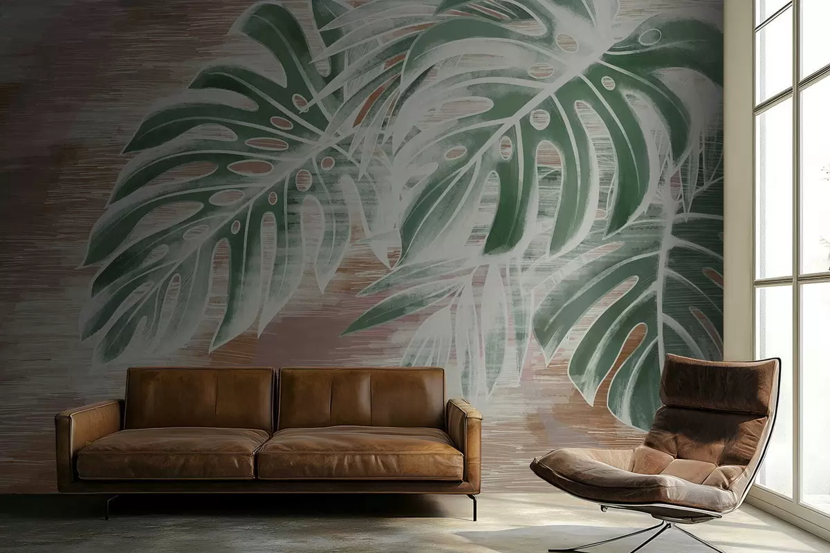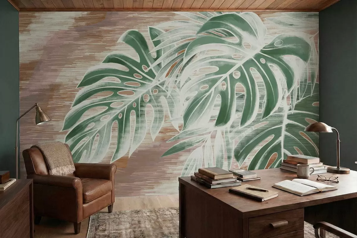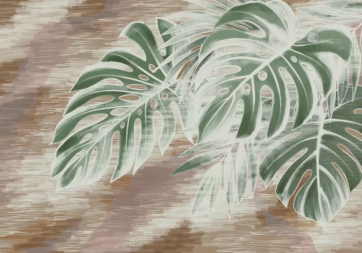 Fototapetes Zaļas lapas uz siltas faktūras abstrakta pamata Nr. w05130v3