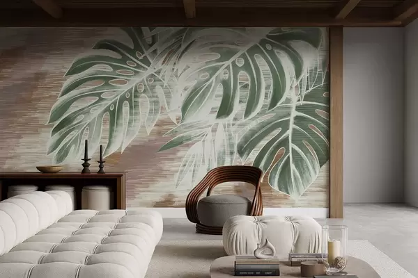 Fototapetes Zaļas lapas uz siltas faktūras abstrakta pamata Nr. w05130v3